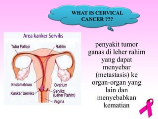 Kanker serviks adalah kanker yang terjadi pada leher rahim. Kebanyakan wanita tidak dapat mengetahui gejala prakanker atau stadium awal. Tahap stadium 4 atau stadium akhir.